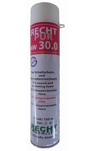Пена полиуретановая монтажная Recht Pur 30л. (750мл). Однокомпронентная монтажная пена. Обладает отличной адгезией к большинству строительных материалов таких как: бетон, кирпич, штукатурка, дерево, различные пластики, кроме полиэтилена и силикона. Имеет отличные звуко- и теплоизоляционные свойства. Применяется для установки и фиксации оконных и дверных блоков, подоконников, стеновых панелей. Для заполнения швов, трещин, пустот, отверстий. Для монтажа и изоляции проводки, технических коммуникаций. Для тепло- и звукоизоляции помещений, климатических камер, систем кондиционирования. Технические характеристики. Температура окружающей среды при использовании от +5 С до +30 С. Время предварительной сушки (можно прикасаться) до 20 минут (23С). Первичное расширение 80%.